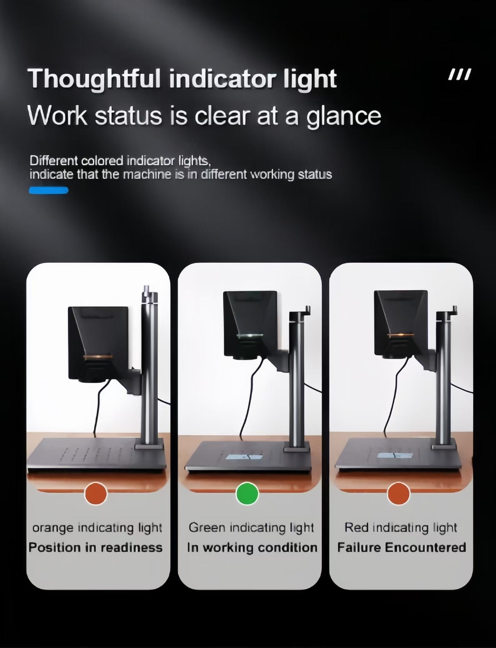 Thoughtful indicator light,Work status is clear at a glance.Different colored indicator lights,indicate that the machine is in different working status.(orange indicating light-