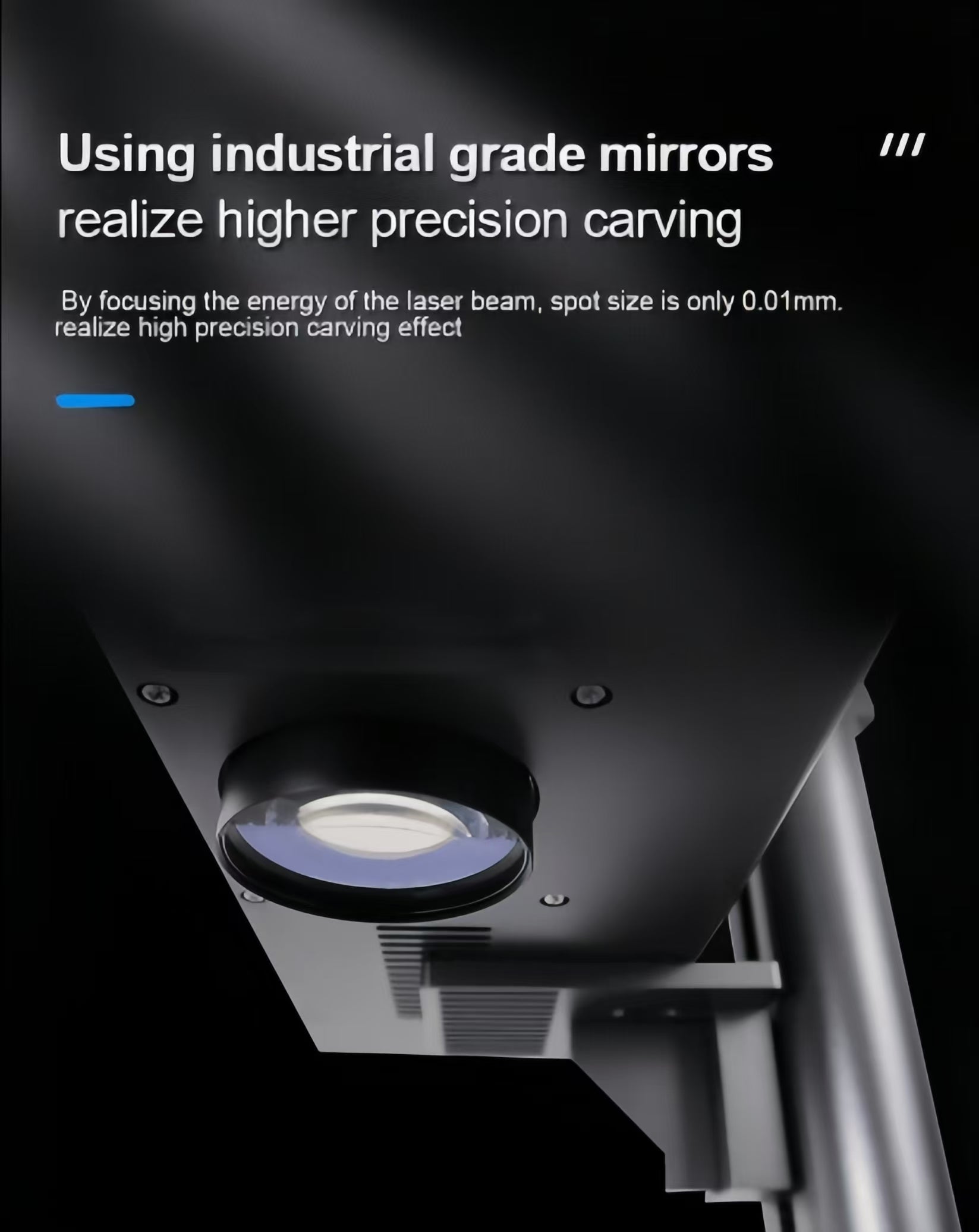Using industrial grade mirrors,realize higher precision carving.By focusing the energy of the laser beam, spot size is only 0.01mm.realize high precision carving effect.