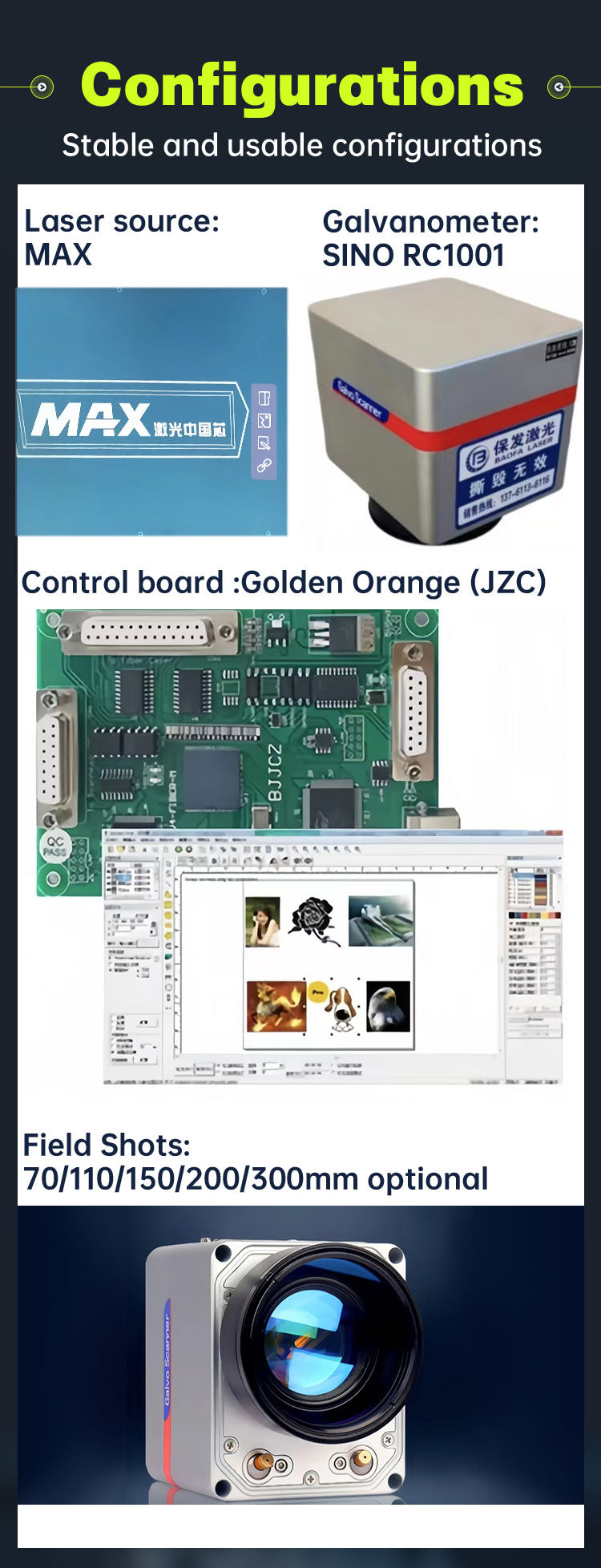 Product features:Our laser marking machine uses high-quality and efficient lasers, has a high-efficiency marking speed and processing efficiency, has high-precision marking details, and has good heat dissipation, stable and reliable performance, and can work continuously for a long time; it can mark and engrave on a variety of materials, and there are various sizes of lenses, rotating axes, 3D relief software and other accessories available for purchase. These different combinations can meet your more daily production needs and specific usage scenarios.