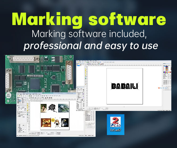 Easy to use: plug and play laser engraving machine, desktop design . Small size, easy to carry. EzCad software is also very easy to use by learning from our tutorial video.